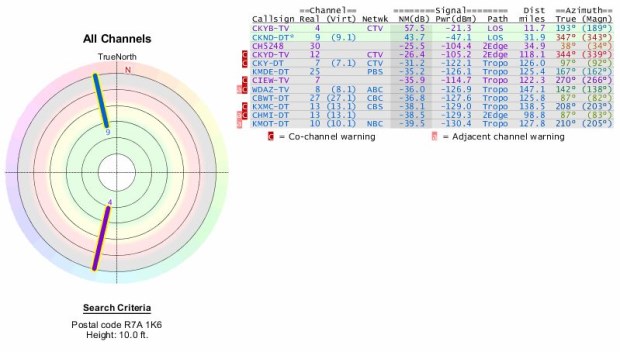 An indoor antenna will get one analog channel, CTV Winnipeg (ch 4), and one digital channel, Global Winnipeg (Ch 9.1).