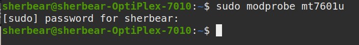 sherbear@sherbear-OptiPlex-7010:~$ sudo modprobe mt7601u