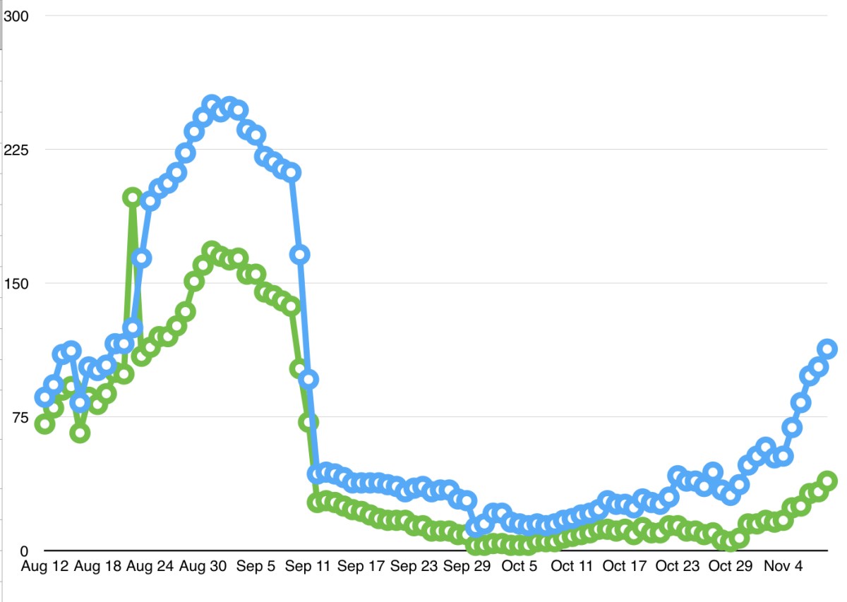 Total cases on dashboard: 433 (+17 or +71 since November 1)
