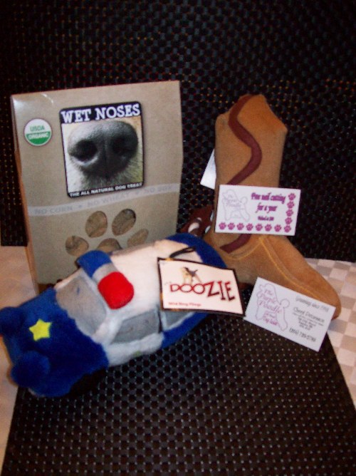 - some puppy friendly toys and treats (also courtesy of THE PURPLE POODLE)