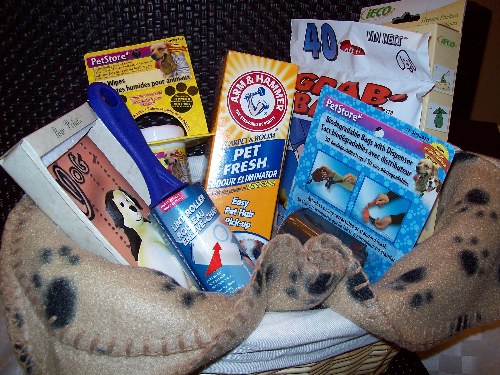 (lint brush, blanket,plague,pet wipes,Pet Fresh carpet cleaner, puppy picture mug....