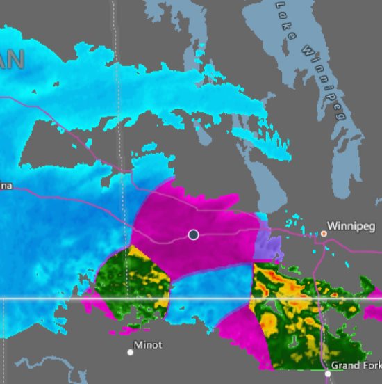 Southern Manitoba will see multiple batches of snow over the coming days as this storm develops. The first is forecast to occur on Friday night into Saturday morning. Snow is forecast to develop in North Dakota, then lift northwards through southern Manitoba. Amounts with this band of snow are forecast to remain low, with general accumulations of up to 4 centimetres.