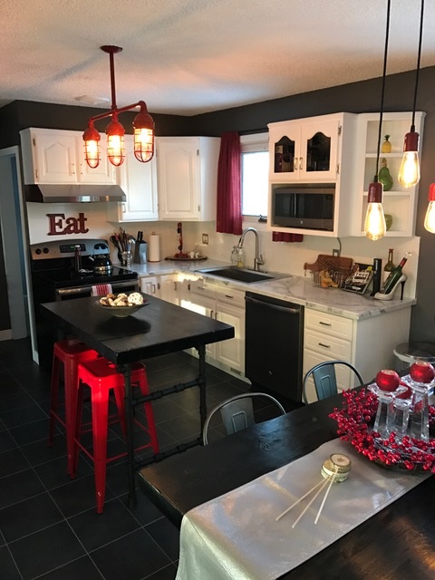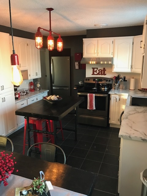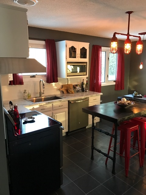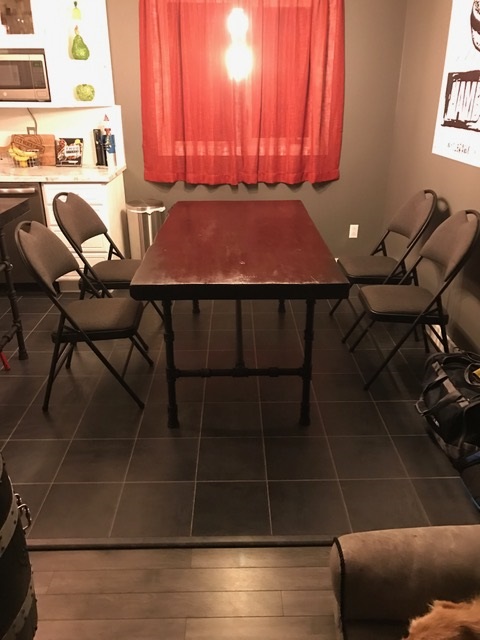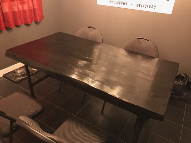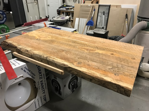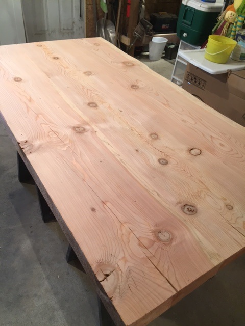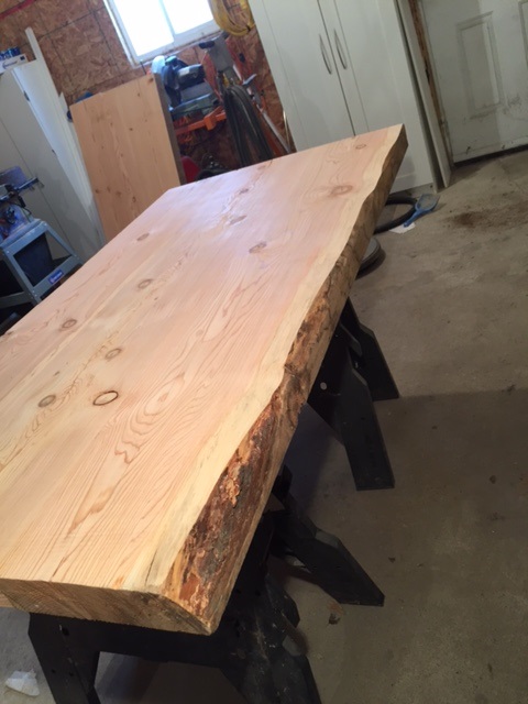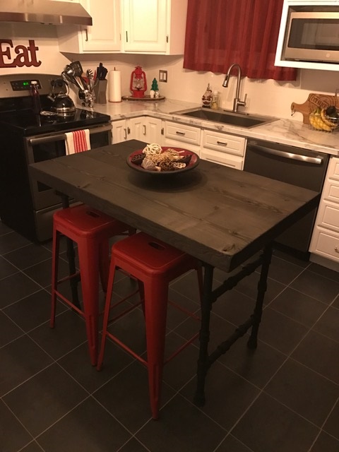 I have the table at a place that has a large planner to do the bottom. Some one had asked about the weight and I'm not sure, at least 75 lbs if not more. It's a beast that's for sure. And the legs are made out of metal pipes an fittings. Played with the sizes and got the table to height of 29 3/4 " - and the island at a perfect 36" !!! Painted the Legs a nice flat black. Going be a rustic/industrial decor piece for sure. Thank you to all for the insight and help.