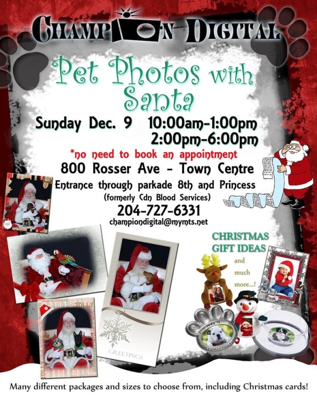 Rona had me put up an ad the other day where it looks like you'll be able to bring in a pet on the afternoon of the 8th for a free santa pic. Just have to spend $20 in the store