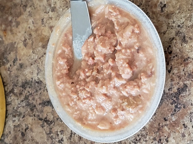 If I try just the pate style, or if the pate is in too big of pieces, they will just walk away. It has to be mush with flaked meat.