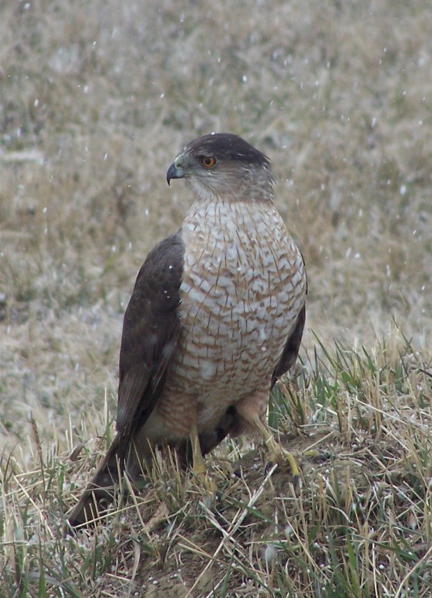 I have a a question on a large bird who landed right next to my bird feeder a few weeks back in an attempt (fortunately unsuccessfully! ) to grab a sparrow who was sitting and eating in the bird feeder.
