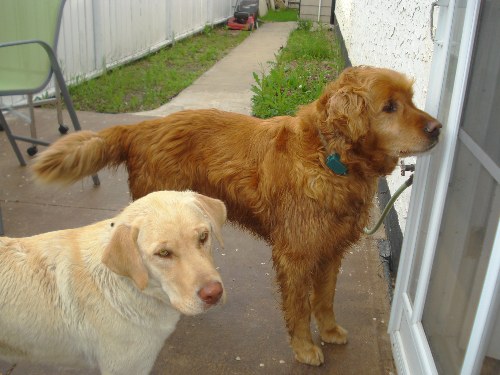 Tonight we found 2 loose dogs travelling together, they were soaking wet, and very friendly big dogs found in Green Acres Area just now. Felt so bad for the two. Called animal control but they couldnt do anything because they werent working. Both have collars. as a dog owner and animal lover couldnt see to see them wonder/have anything happen to them so took them in. PLEASE message if you or anyone you know is missing their 2 dogs as they are safe and waiting for their owner! They are tan and dark brown in color(i think it was dark brown as it was dark!)