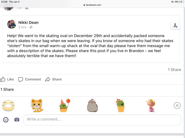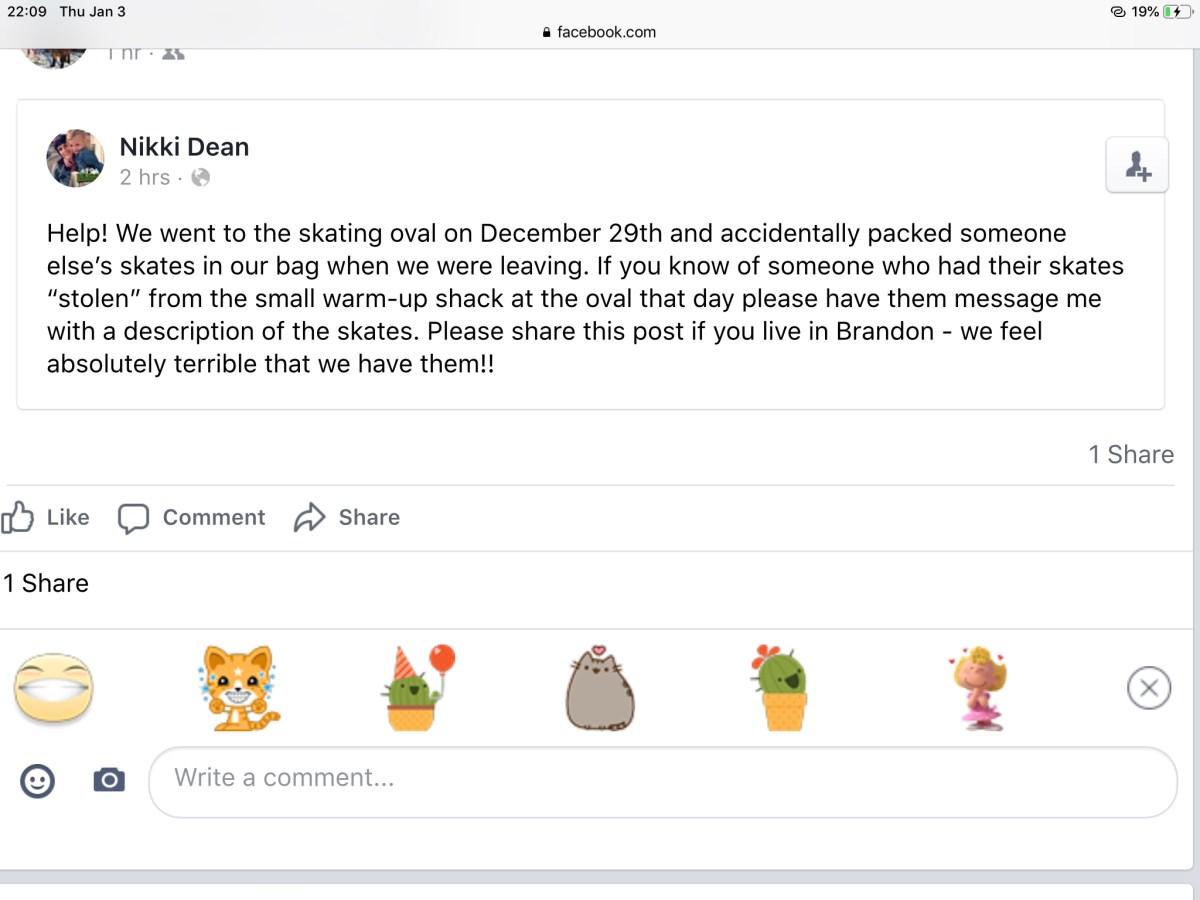 This afternoon I got my first stolen in Brandon at Skating Oval. I left my brand new bauer x500 in the northern cabin and went outside to look after my daughter. When I came back 15 mins later, my skates were gone. I checked up around inside and outside found nothing. Couldn't believe someone did this in Christmas and New Year week. As a reminder, don't leave valuable stuff out of your sight, some bad guys were really there and will be there again.