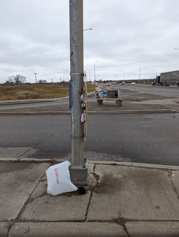 Oh Canada said "per the video it is considered loitering. There is a community standard bylaw that is being written to address panhandling and loitering. Linking the act to homelessness is an assumption. Drugs and alcohol maybe related but not always. Are we to allow people to stand on a median and put themselves and others lives in danger? If and when someone runs over one of these people or is scared by the person standing on a median and runs over a pedestrian or hits another vehicle is that going to be, ok?