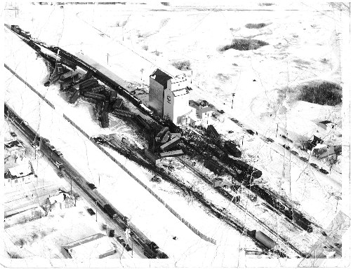 I work in the east end and apparently there has been a derailment of 7 cars, some carrying anhydrous ammonia. Police were just here to tell us to stay inside and call the Police station in 2 hours for an update. The car/cars are not leaking yet!