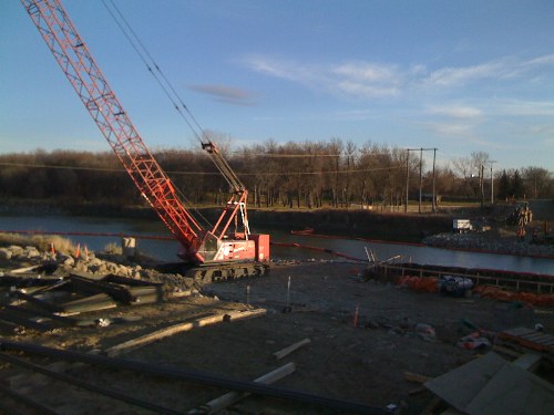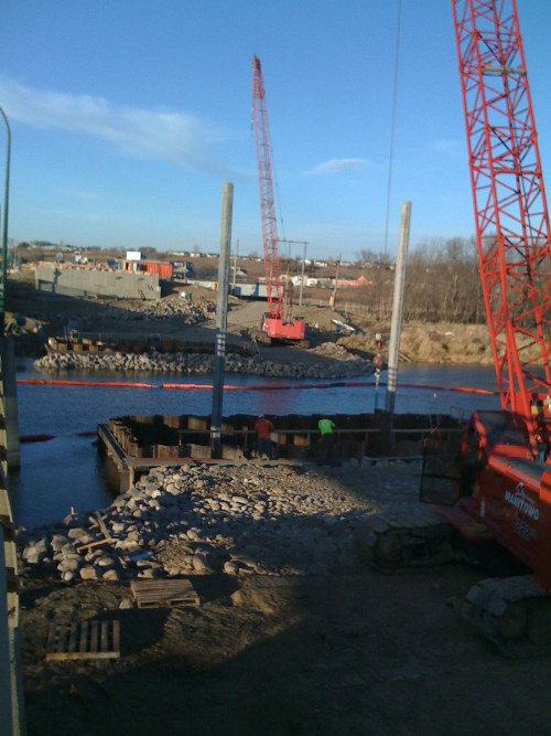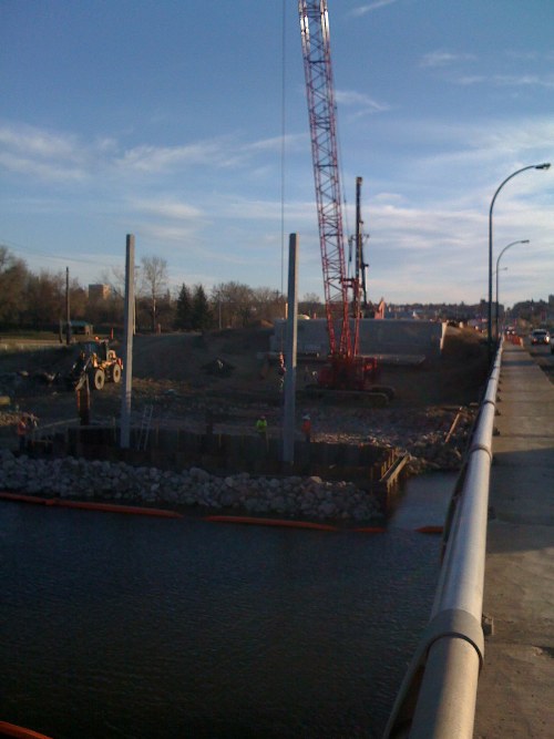 While I was out for a blade yesterday, I passed over the river on 18th and by the new bridge. As many will have no doubt seen on their drive by, it really looks to be coming along. I managed to snap a few quick pics of where things are at for anyone wanting a closer look.
