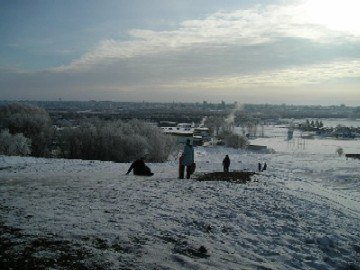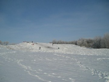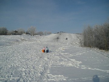 so driving up the hill, by the Sportsplex, a bright row of lights shows a large toboggan run with a couple of lighted Christmas trees on the top.