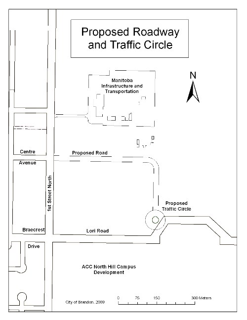 "the city plans to build an 800-metre paved road from the corner of Centre Avenue and First Street North east and then south where it could intersect with Lori Road at a traffic circle connected to the ACC campus."
