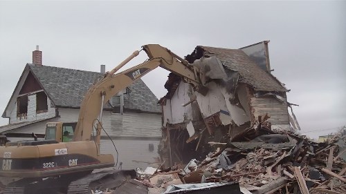 The demolition was done in parts. The building Senate was in was done in two parts, with the house to the North also to be brought down.