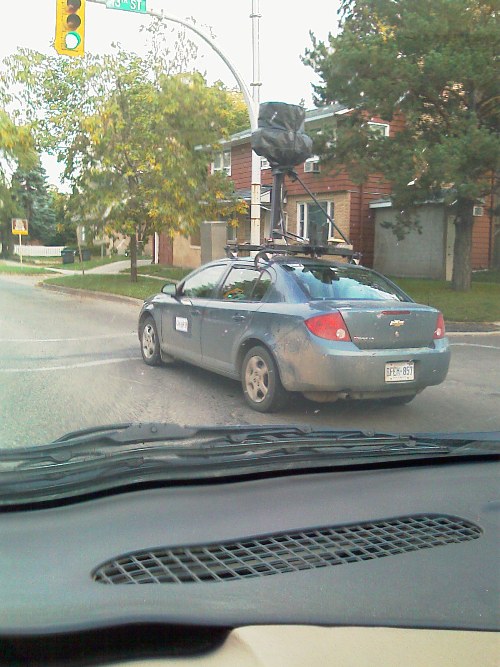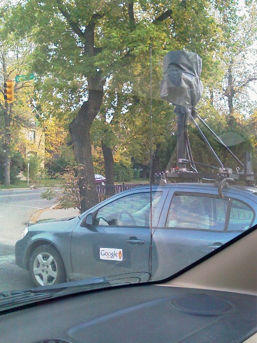 Well the google car just drove by my place...sure glad I wasn't floating in the pool when it drove by!!! lol (me + bathing suit + internet = one cranky brandonite !!! lmao) Seeing as the camera on top could easily see over my 6 foot fence!!!