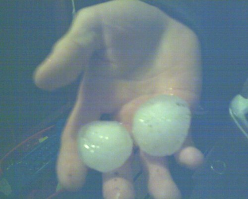 What a hail storm at about 4:30am.Golf ball size hail woke me up.I hear broken windows in peoples houses.I hope no one was outside when it hit.The Esso on the hill I guess has got broken windows.There was also a lot of water with this storm.