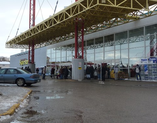 I was out driving at noon and couldn't help but notice the lineup (pictured at right) to get into Superstore as soon as the doors open. Superstore is of course known for being very busy on weekends, but I'd never been by right at noon to see that kind of lineup before.... is this status quo??