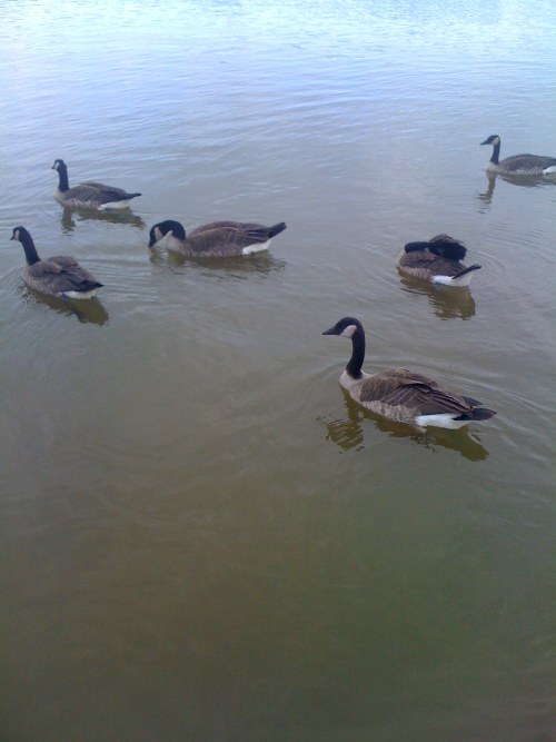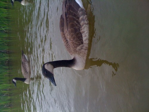 My husband and I and our kids often take bike rides to the Discovery Centre. Today was just one of those days. We took a ride in the rainsnow and had a particularly great time(it was cold but great). Lately when we go riding there are many Canada geese and Ducks around, and usually they run, walk, swim or fly away when they see bikes or people who are walking coming toward them. However today there was one goose that wouldn’t budge. It just stood there and honked at us and hissed at us. We were wondering if its nest was somewhere nearby, sure enough at its feet was a pile of dead grass and what looked like two eggs under the grass. We then decided to leave the goose alone and carried on our ride. The kids thought it was really neat. We really enjoy having the Riverbank Discovery Centre in our city.