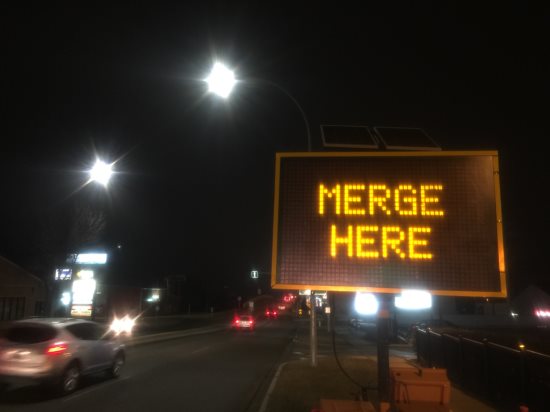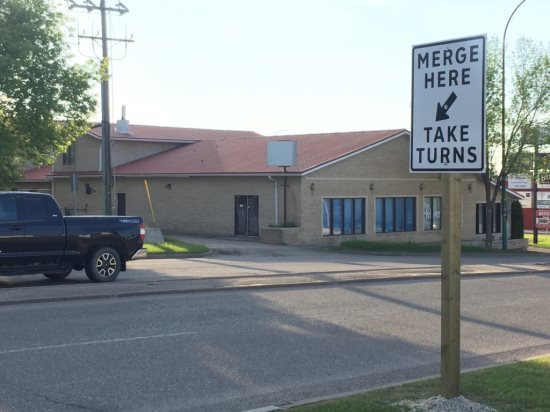 The REAL solution (if the traffic gurus had a clue what they are doing here) would be to make northbound 2 lanes and southbound one lane. Lots of time to merge properly when going southbound, rather than within half a block of a traffic light. It's the distance from Rosser lights to the 'merge' that ultimately causes the problem, and is why zipper merging doesn't work here. " |
