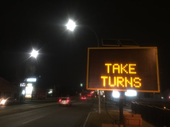 The whole reason they put the sign up is because 1st St is about to close and traffic is going to get nuts on 18th St. So they decided it's time to force people to do what they should have been doing all along, ZIPPER MERGING! In some big cities they even have specific road signs with a picture of a zipper and everyone knows they need to be taking turns, not speeding up and inching along denying people in the right hand lane from getting into the left lane. It's like people in Brandon think they are better than others because they got into the left lane early, so they shouldn't have to let others in. Never seen anything like it.
