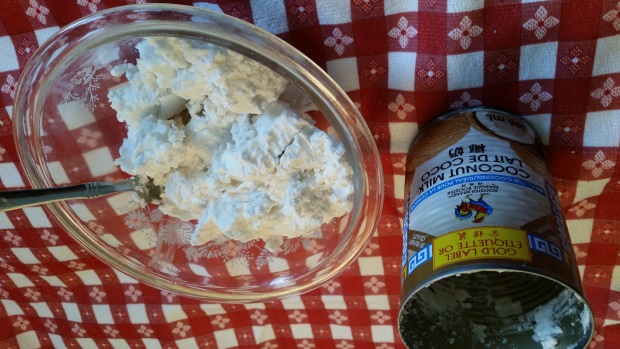 If you're using it for some other purpose (like maybe for fudge or a pina colada, where you need it to be thick but not whipped) coconut manna may work. You can buy it in a jar at Two Farm Kids. Coconut manna is pureed coconut flesh so it has a coconutty texture. It isn't silky like coconut cream.