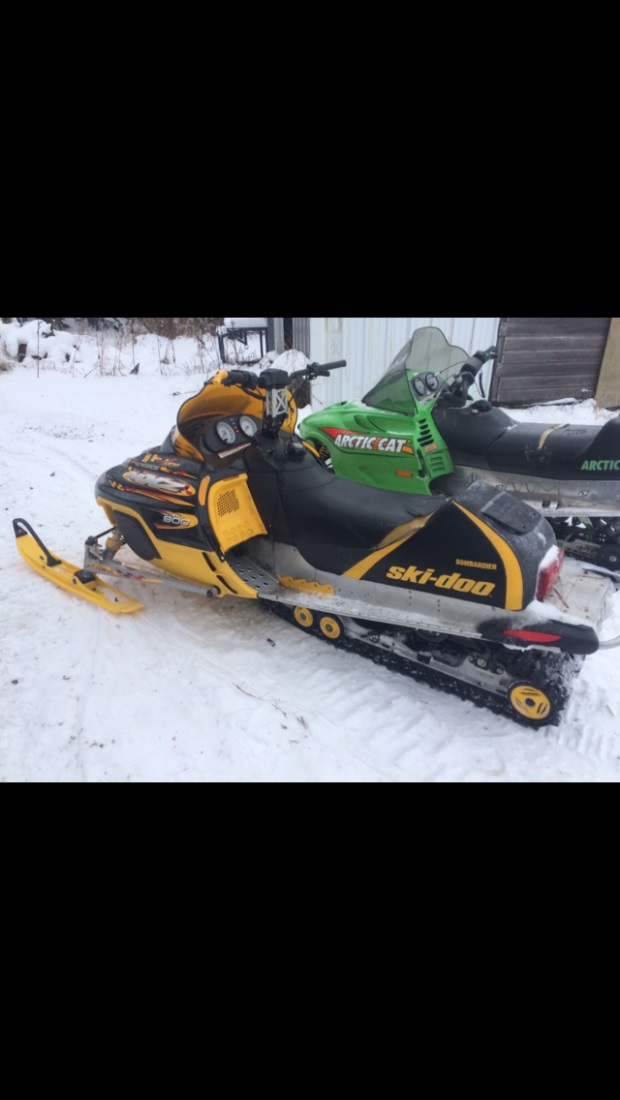 The sled is a 02 Mxz 800 black and yellow, ( no engine, in it)