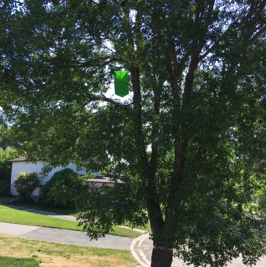 Does anyone know what the green lanterns hanging on some city trees are for? We came home from the lake to one hanging on our front city tree & I also saw the exact one on a tree on Victoria Ave across from Tim Hortons. Just curious!
