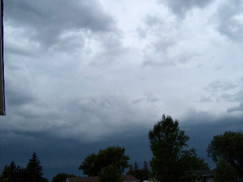 It looks like if things hold we're likely going to get some sort of a storm mid-late afternoon. A system that's been headed the Westman way from Saskatchewan really seems to be flaring up.