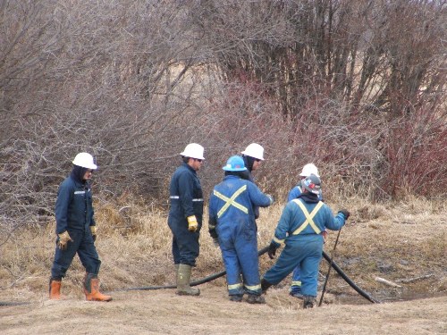 Apparently one of the nearby piplines had sprung a leak and Enbridge immediately began efforts to contain the spill, not waiting to see if the pipeline was actually theirs or not.
