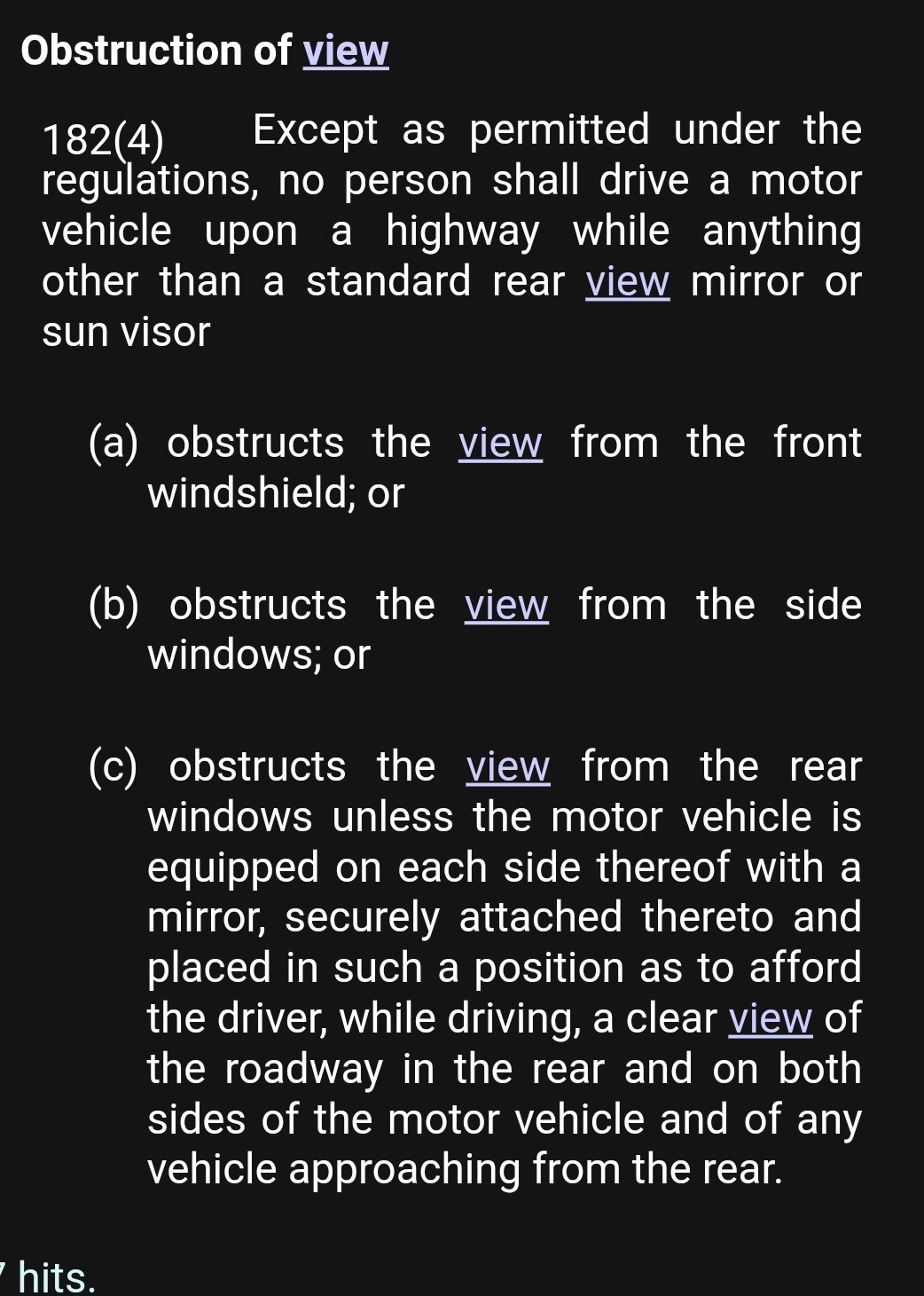Triplethreat said "A truck, it has to have outside mirrors of a certain size. If you are driving a vehicle with small mirrors or only a driver's side mirror, you can't block off your rear window. A dirty window would be considered obstructed. "