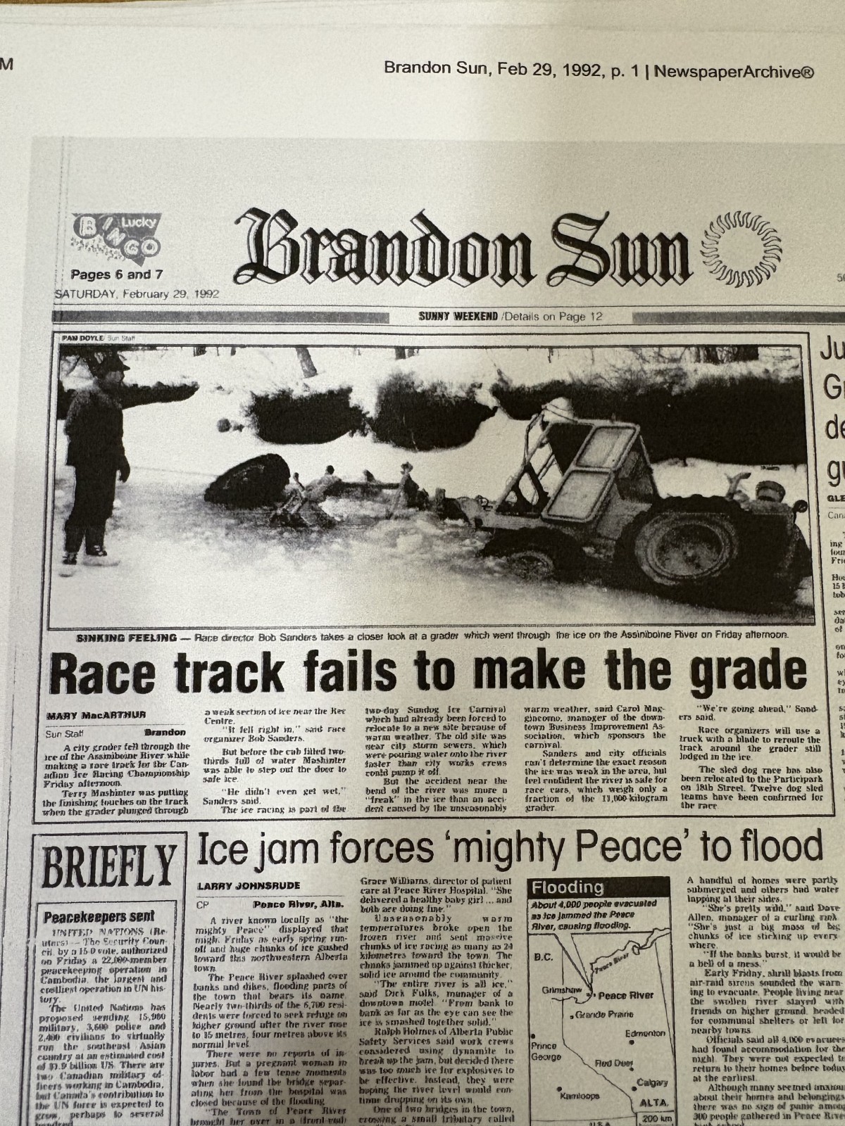 The_Young_Man said "Below is an article in the Brandon Sun from the time. It’s dated Saturday February 29, 1992 which would have been a day after the grader fell thru the ice. I actually completely forgot I had that article. It would be interesting to find out how they recovered it. "
