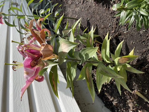 And I agree with the others, maybe sunscald but really it looks like just normal life cycle. It's pretty hard to mess up perennials, as most thrive with a certain level of benign neglect. If they only do so-so this year, as long as they get enough water and sunlight they will likely bounce back next year.