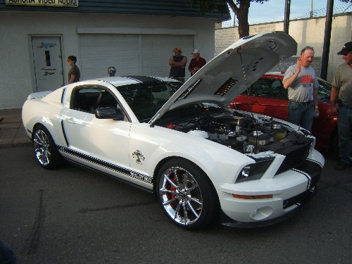 As I was driving down 10th st yesterday Sun Aug9, I came to the intersection at 10th and queens and there it was a Shelby GT500 Super Snake white with blue stripes. I said holy &$#@% thats a Super snake, he was heading south on 10th street near Richmond. This is a 725 hp Shelby prepared mustang. Has anybody else seen it, I sure would like to get a closer look at it.