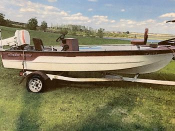 15 Foot fiberglass fishing/recreational boat with 35hp Johnson motor. Sturdy trailer. Power winch. New seats, new carpet. Engine work done.