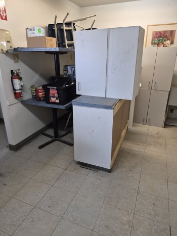 Cabinets and most same as kitchen cabinets ,counter tops etc ,enough to do several kitchens or nice for workshop etc ,lots more than pictured ,must remove some from walls ,easy just screwed on ,in brandon text 204-761-0672