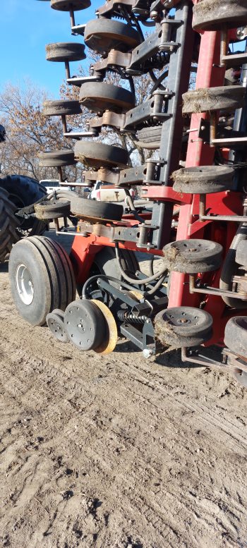 2014 Case IH 60 ft. 7.5 inch spacing single disc single shoot drill with very nice 3580 ( 3 compartment, 580 bushel tank) Case IH steel air cart with dual shoot capability. Disc and scrapers replaced 3 years ago. Good for a while depending on soil type , speed and moisture. Probably good for life in Red River Valley .We also drilled and put in grease nipples to prevent openers from seizing. there are spoked gauge wheels on last 16 rows on each end to prevent plugging Reason for selling?down sizing Asking $175,000 Call David 204-534-7531. Tractor is also for sale