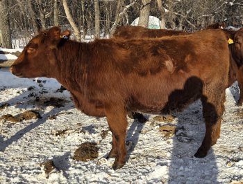 12 home raised red Angus based heifers. Bred to proven calving ease red Angus bull. Calving start date mid march. On a full herd health program.