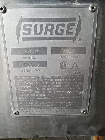 2000 US gallon milk tank, dipstick measure, single agitator. Comes with front mounted ladder, 6 height adjustable legs, wash pump, auto wash controls, soap dispensing pumps and cooling compresor. Cooling condenser replaced one month before we stopped using it. Cooling compressor professionally sealed and disconnected from milk tank, everything ready to load on trailer. Tank dimensions include front ladder and top agitator.
