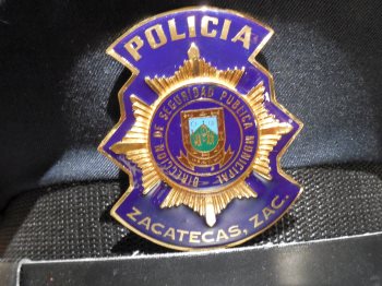 Really hard to find Obsolete Mexican Police Officer's cap. They have to buy their own uniforms etc. so sell items to other officers when they leave or whatever. Badge reads: Direccion De Seguridad Publica Municicipal Zacatecas (in short City Police or MUNICIPAL PUBLIC SECURITY DIRECTORATE) for Zacatecas which is the Capital City of the State of Zacatecas. Tragically it has one of the highest m##der rates for police officers in Mexico and some municipalities in the State have had their police all quit.