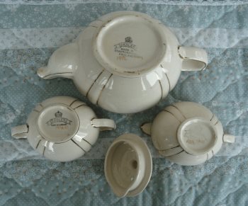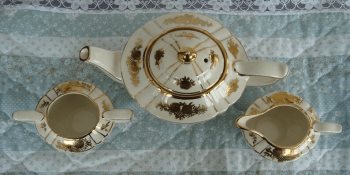 Sadler - 3 Piece (plus lid) Vintage English Teapot plus Creamer and Sugar Bowl - Gold Bordered Ribs, Gold Roses and Trim - Note: handle on creamer has been repaired. Can arrange for delivery to surrounding area.