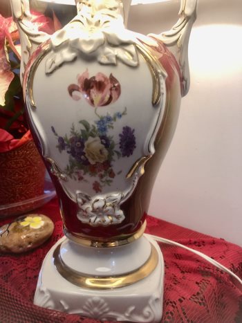 -Beautiful Vintage Ulrich Victorian Ceramic Table Lamp With Floral Design