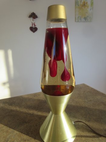 Original Red Lava Lamp.....Gold Starlight Base....17" high......very good condition.