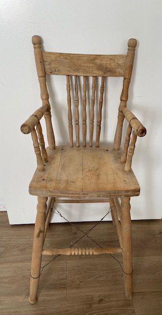 Vintage wooden highchair for sale. Started to refinish but couldn't get it completed. Asking $20 and it's available for pickup in Minnedosa.