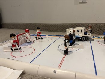 Playmobil Hockey arena and Zamboni and score board. Light wear from play.