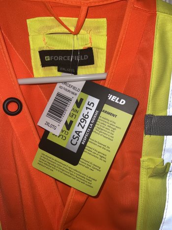 Total compliance with the newest CSA standard: CSA Z96-15; Orange and Lime meet Class 2 Level 2 and Black and Navy meet Class 1 level 2