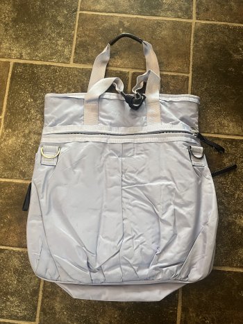 Great condition. Has a ton of compartments and zippered bottom to hold yoga mat