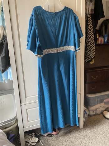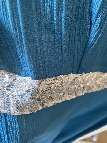 Turquoise cocktail dress with silver beaded waistband and pearl detail on sleeves. Brand new never worn