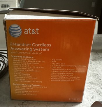 AT&T cordless answering system with 2 handsets and base unit.