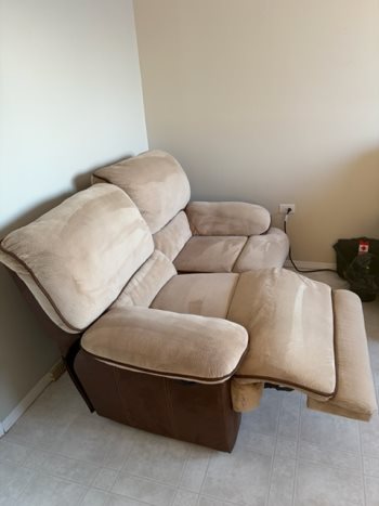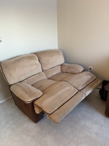 Reclining Love seat. $200, Cash only, no e-transfer, no holds no delivery bring help to pick up. Call before you come out.