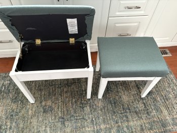 1 bench with storage space and one small stool to match, both repainted and re covered. Asking 75$ for the pair. Thank you